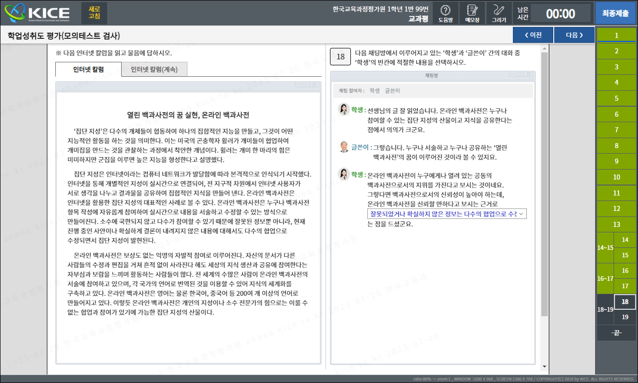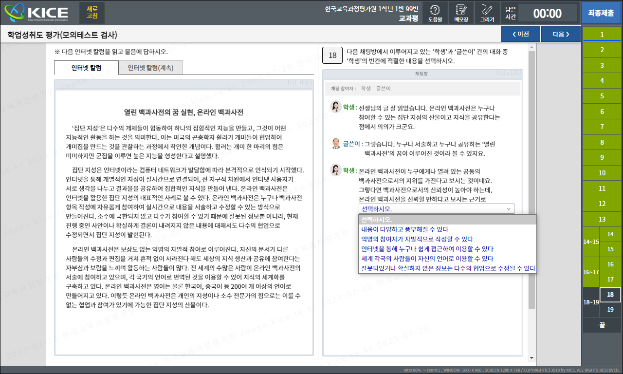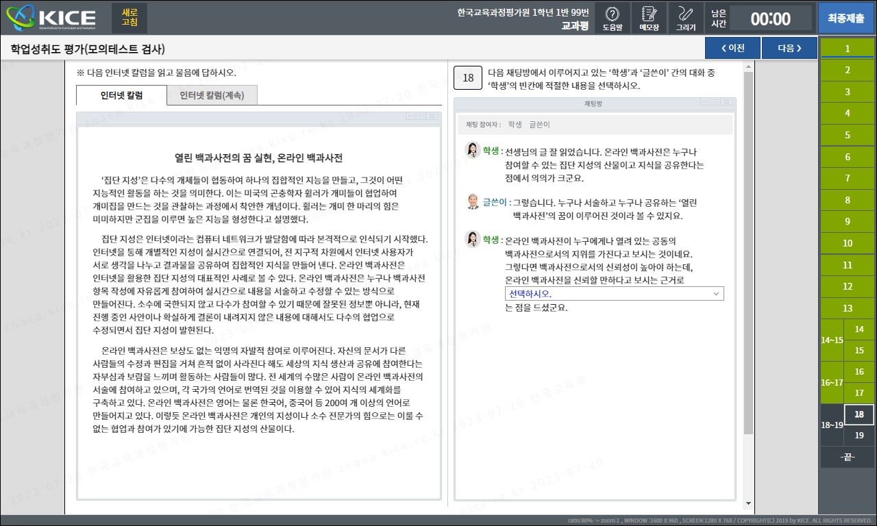 답안을 완성한 후 다음 문항으로 이동합니다. ‘다음’ 버튼을 클릭하세요.